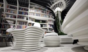 На станции метро Кондратовича в Варшаве открывается первая в Польше библиотека в подземке — Metroteka. Её интерьер напоминает декорации к фильмам о космосе: белые волнообразные формы, необычные диваны и стена с гидропонными растениями создают ощущение, будто вы оказались на борту космического корабля.