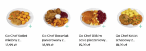 Biedronka начала тестировать продажу готовых блюд под новой собственной маркой Go Chef. Пока эта продукция доступна только онлайн через приложение Glovo (услуга Biek) в некоторых районах Варшавы. Блюда подаются в приложении как из ресторана: на тарелках, красиво оформленные, что подчеркивает, что Biedronka делает ставку не просто на еду «на вынос», а на сегмент качественных готовых блюд.
