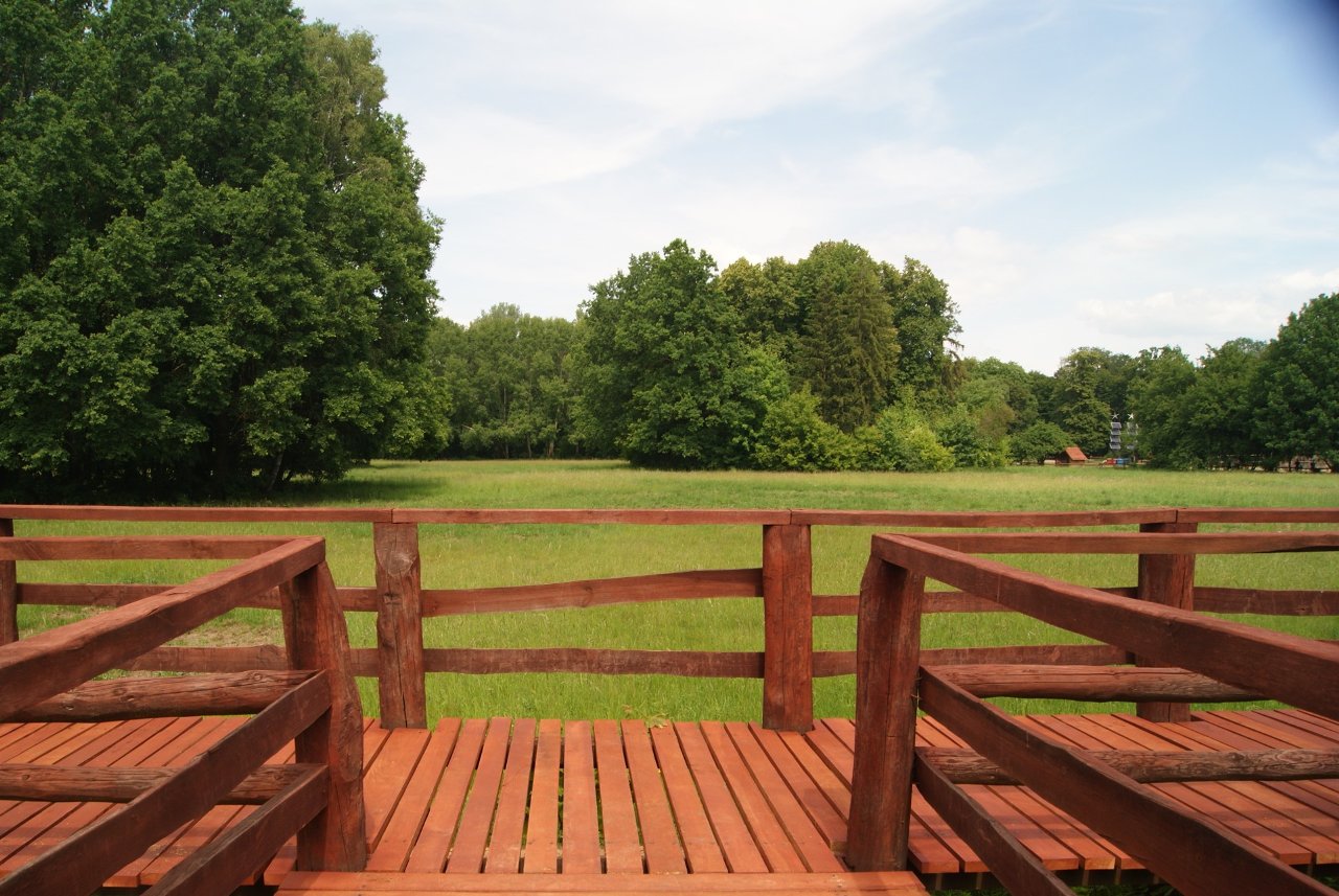 смотровые площадки и деревянные мостки над лугами и прудами;