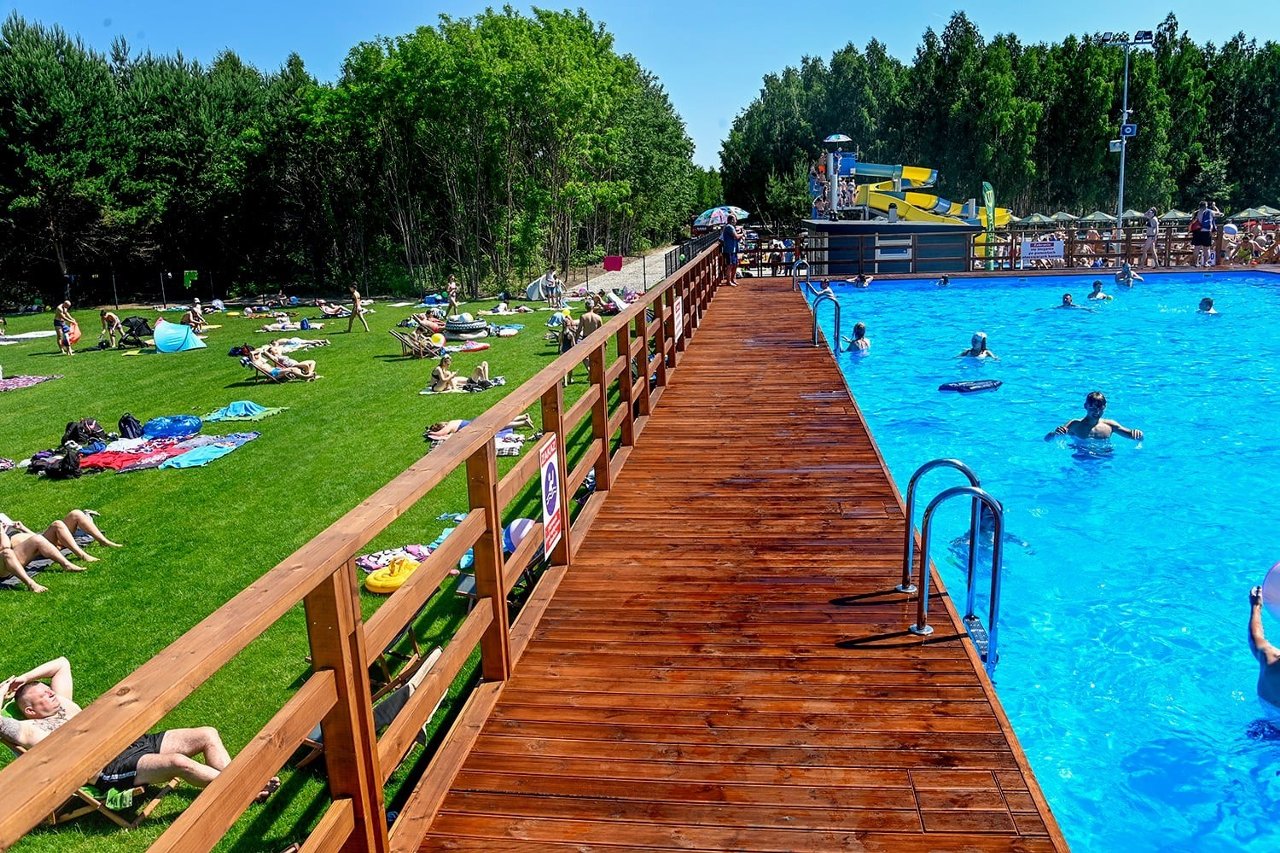 Объект построили в 2022 году за почти 5 млн злотых. Открытие прошло 12 июня, территория находится под присмотром спасателей. Входной билет стоит от 10 до 50 злотых в зависимости от времени посещения и категории (для детей, студентов, семей действуют скидки). В стоимость входит доступ к бассейнам и спортивным площадкам.