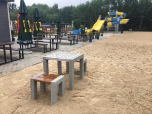 Кроме бассейнов, на территории есть пляж с лежаками и зонтиками, площадки для пляжного волейбола и футбола, детская площадка с горками, летний павильон с кафе и санитарные удобства. Комплекс стал популярным местом отдыха для жителей Варшавы и окрестностей, привлекая много посетителей в летний сезон.