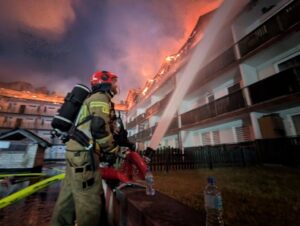 В Зомбках под Варшавой минувшей ночью произошёл один из самых масштабных пожаров последних лет. Полностью сгорела крыша жилого дома, разрушены мансардный этаж и два верхних этажа. Повреждены и нижние уровни — огонь проник даже в подвалы. Здание, построенное в 1998 году, серьёзно пострадало и, вероятно, будет выведено из эксплуатации.