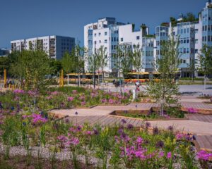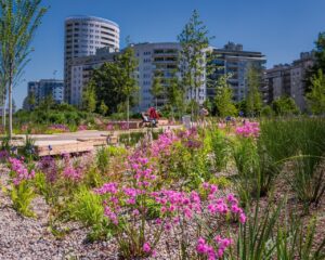 На Урсынове открыт третий участок линейного парка вдоль улицы Filipiny Płaskowickiej. Его центральным элементом стал дождевой сад — не только красивое, но и экологически важное пространство. Он помогает удерживать дождевую воду, насыщая влагой десятки видов растений, включая осоки, горцы, луки декоративные и черные ольхи.