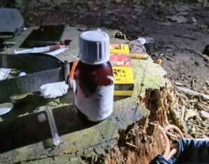 При нём обнаружили сумку с несколькими шприцами, наполненными разноцветной жидкостью, а также пустую ампулу от препарата, используемого в лечении наркозависимости. Всё это дало основание предполагать, что мужчина находился под воздействием запрещённых веществ. На место вызвали полицию, которая доставила его в участок для выяснения обстоятельств.
