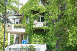 Особое внимание уделялось безопасности: цокольный этаж оборудован газо- и бомбоустойчивым бункером с панцирными окнами, перекрытия усилены железобетоном, что помогло дому пережить Вторую мировую войну. Несмотря на частичные повреждения — трещины, разрушения колонн и внутренние пожары — владелец восстановил виллу собственными силами.